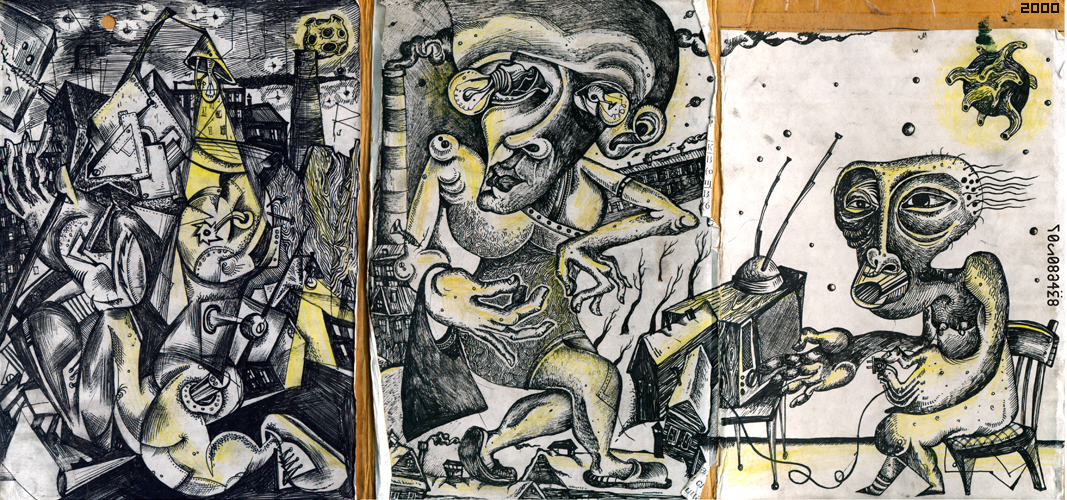 Бумага, картон, гелевая ручка, цветной карандаш. 2000 год.
